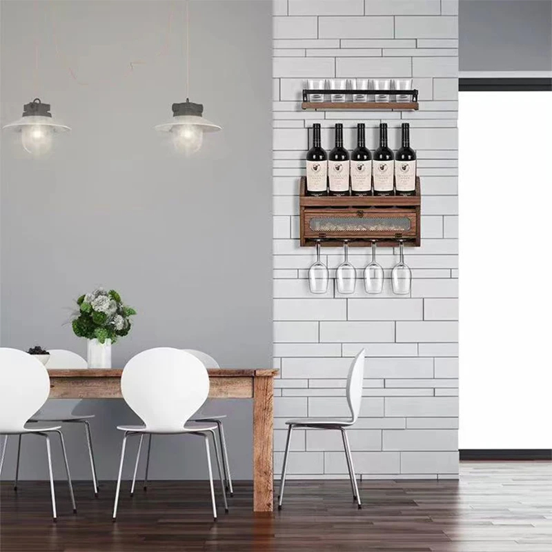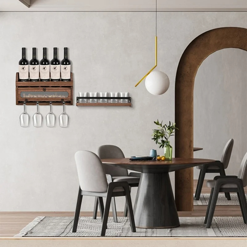 Notre étagère à vin murale est conçue pour une installation facile et une utilisation quotidienne pratique. Les crochets et supports intégrés permettent de suspendre verres et accessoires de bar, maximisant ainsi l’espace de rangement et la fonctionnalité.