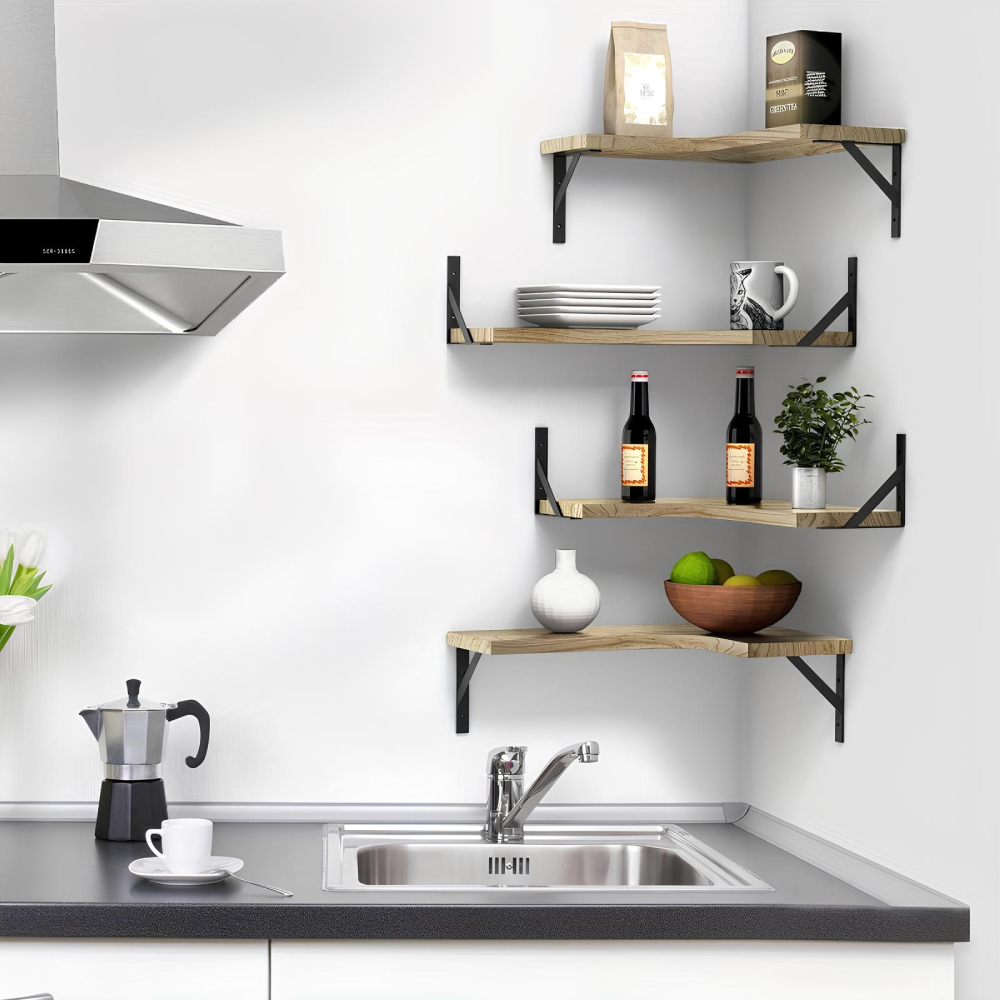 Offrez-vous un espace de rangement optimal avec ce lot de 5 étagères murales d’angle en bois. Chaque étagère est conçue pour vous offrir une capacité de rangement sans encombrer votre intérieur.