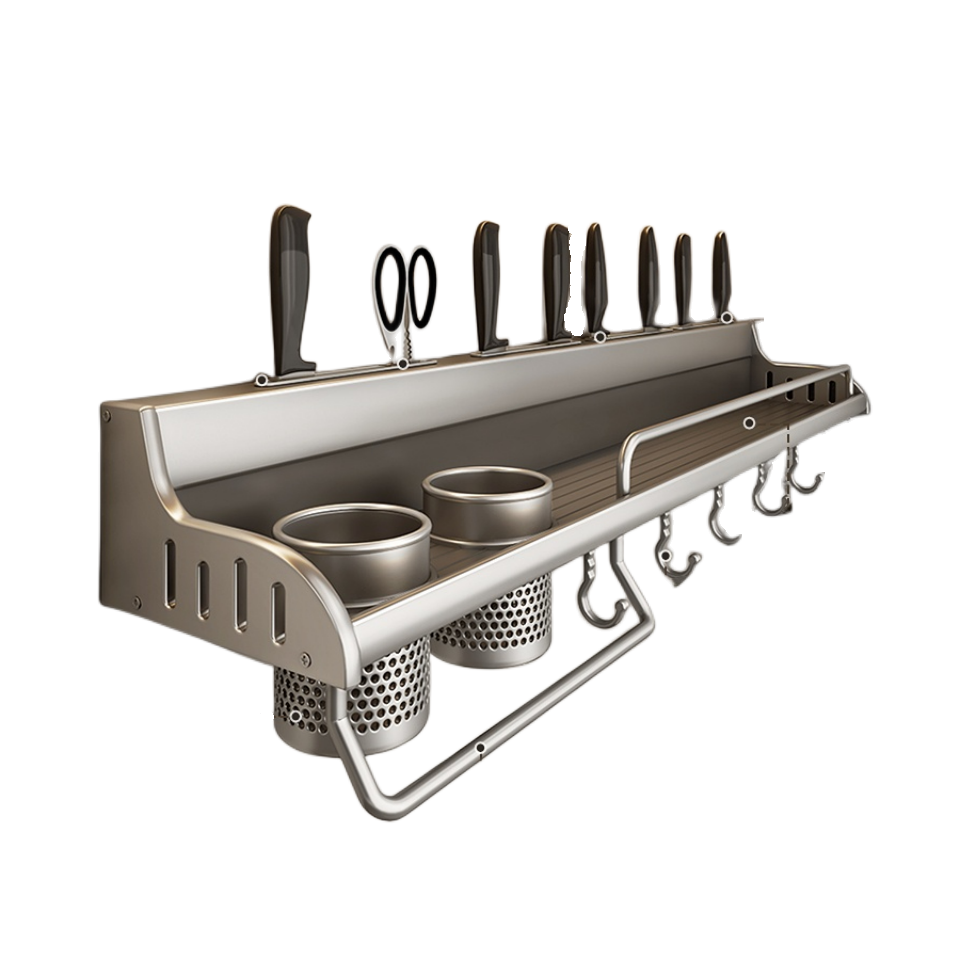 Les crochets robustes sont parfaits pour suspendre vos ustensiles de cuisine tels que spatules, louches et fouets, tandis que les compartiments spacieux peuvent accueillir vos bouteilles d’huile, épices, et autres condiments.