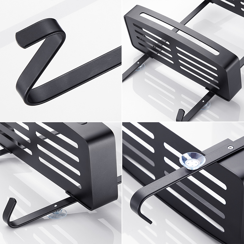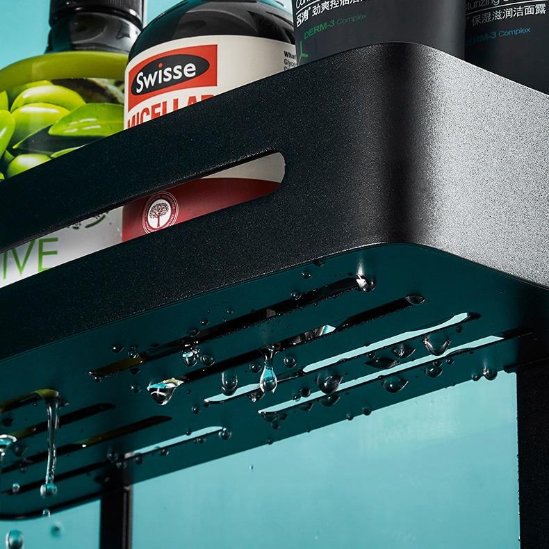 Notre étagère est équipée de deux crochets très pratiques pour y suspendre votre fleur de douche ou votre gant. Fabriquée en aluminium, son matériau est assez robuste pour supporter le poids de gros flacons sans risques de déformation dans le temps. Durable et inoxydable, il est également très résistant à l’eau et à la corrosion.