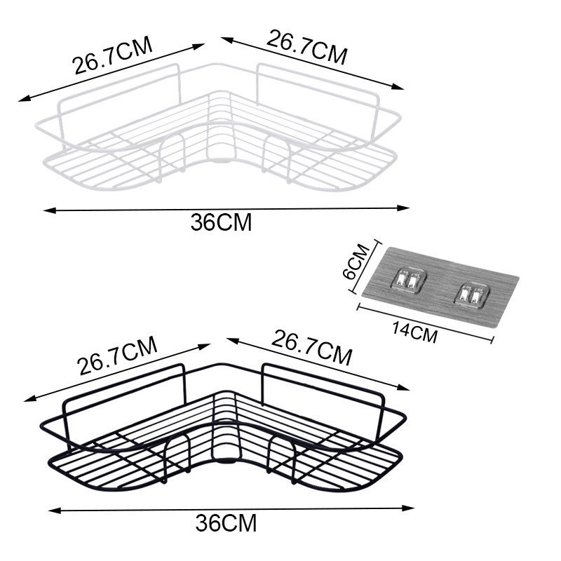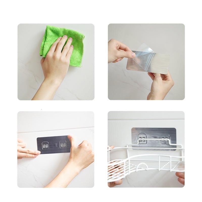 Notre étagère est facile à installer et ne nécessite aucun perçage au mur. Après avoir nettoyé la surface à l’aide d’un chiffon doux, il vous suffit d’appliquer les deux supports autocollants inclus, de les positionner à la hauteur souhaitée et d’y accrocher le panier d’angle. Rapides à poser, ses doubles adhésifs correctement positionnés sur chaque pan de mur répartissent efficacement la charge et assurent de supporter le poids de vos plus grandes et lourdes bouteilles de shampoing ou de gels douche.