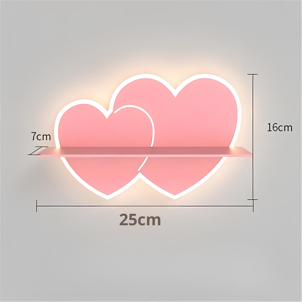 Notre étagère murale avec deux cœurs lumineux est idéale pour la chambre de votre enfant. Cette étagère offre non seulement un espace de rangement pratique, mais aussi un éclairage doux et apaisant grâce à ses cœurs lumineux.