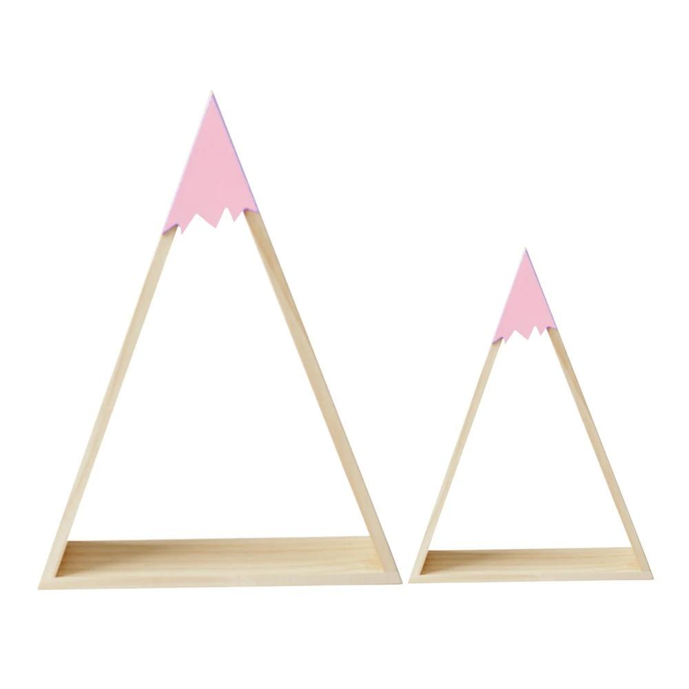 Ces étagères murales triangulaires offrent non seulement un espace de rangement fonctionnel, mais ajoutent également une touche de rêverie à la pièce. Les enfants adoreront l’aspect réaliste de la montagne enneigée et seront inspirés à explorer leur imagination tout en organisant leurs objets préférés. De plus, la combinaison de la neige rose et du bois naturel apporte une ambiance chaleureuse et accueillante à la chambre.