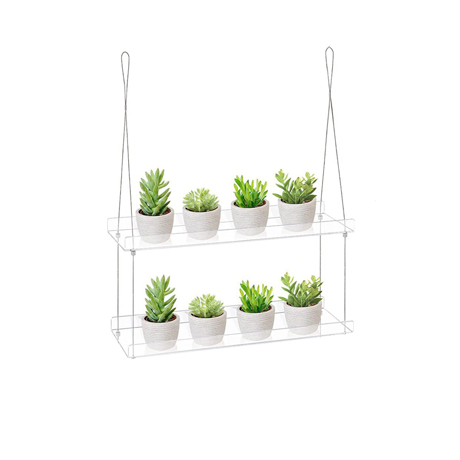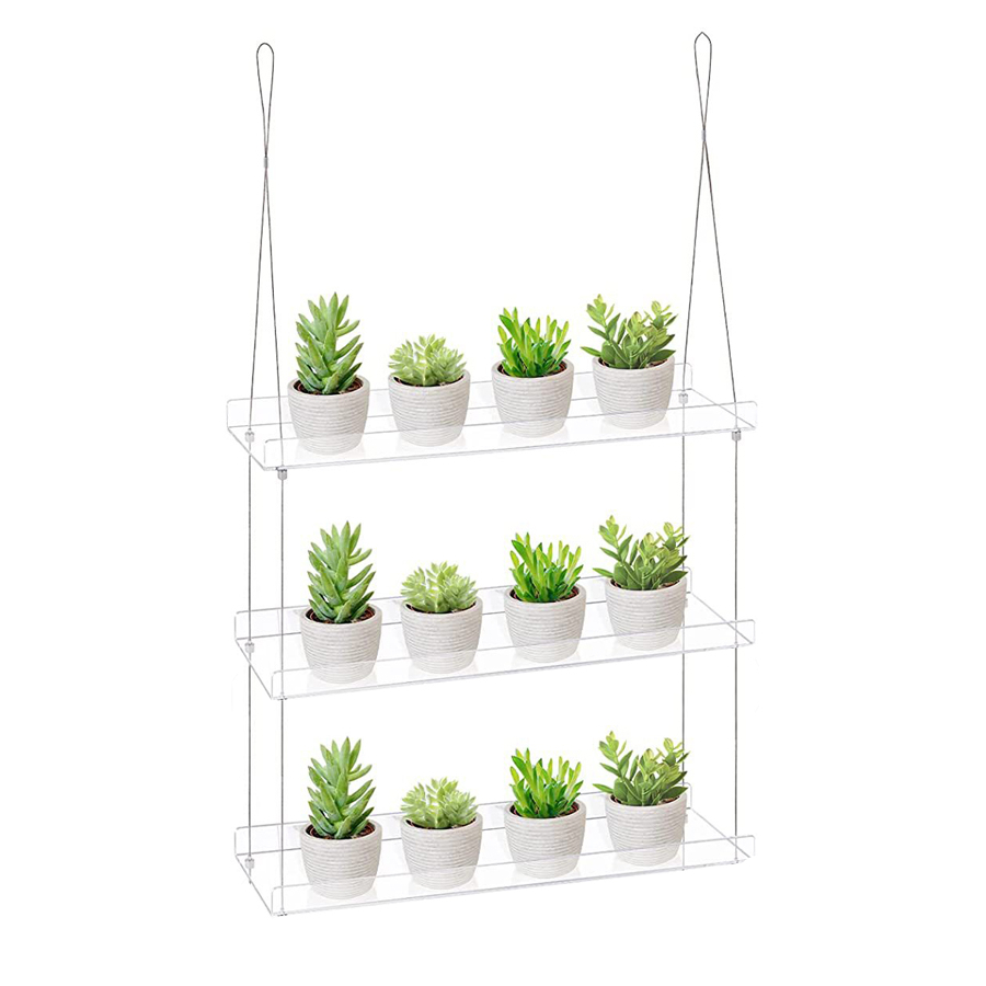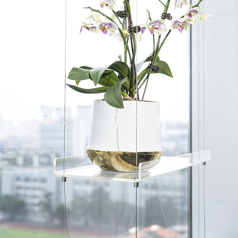 Grâce à la transparence de ces étagères, ce meuble suspendue offre une manière élégante de mettre vos plantes et vos pots en valeur. Comme flottant dans l’air, vos plantes en suspension apporteront un charme unique à votre décoration. Fabriqué en acrylique, cet étagère a une apparence minimaliste et moderne qui s’intègre parfaitement dans tous les types d’intérieurs. Ce matériau haut de gamme est également robuste et durable, ce qui vous garantit que votre étagère résistera dans le temps.