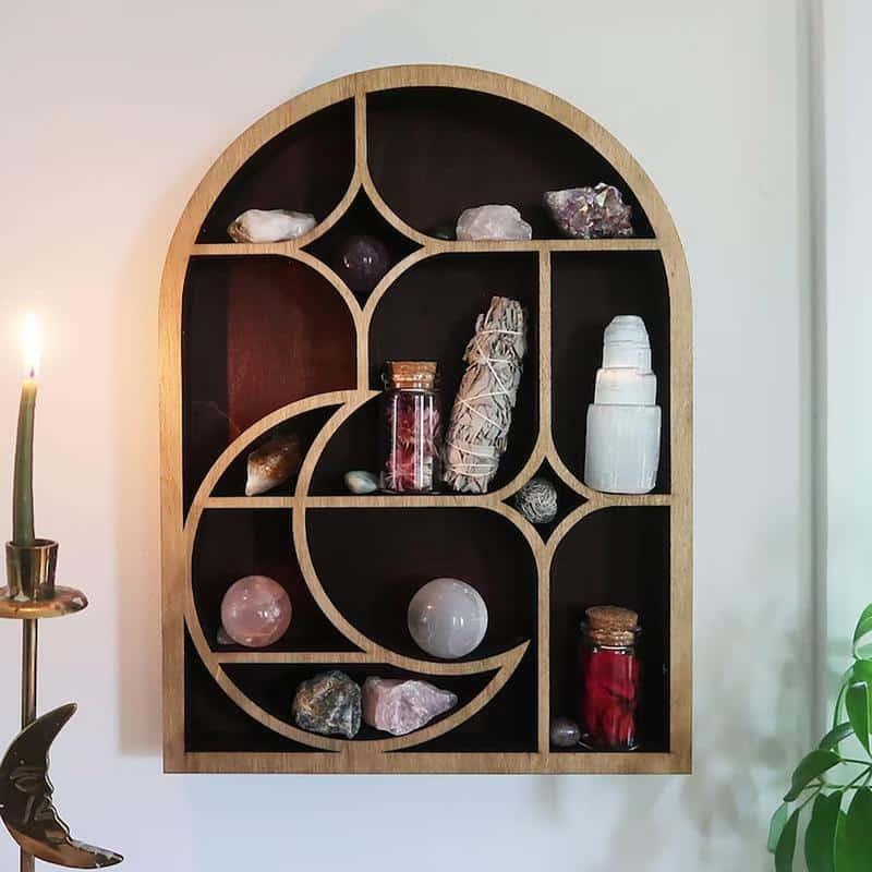 Que ce soit dans votre salon, votre chambre ou votre espace de méditation, cette étagère murale en bois en forme de fenêtre apporte une touche de magie et d’organisation à votre décoration intérieure. Optez pour cette pièce unique et créez un espace où chaque objet raconte une histoire.
