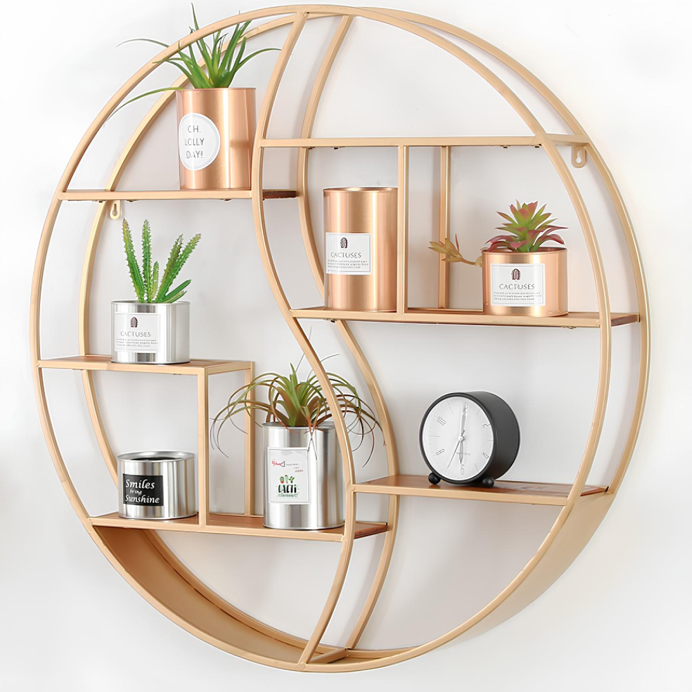 Découvrez l’élégance et la modernité de notre étagère murale ronde en métal doré. Sa forme circulaire unique et ses lignes épurées en font un ajout sophistiqué à n’importe quelle pièce de votre maison.