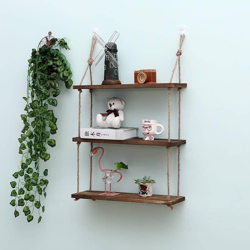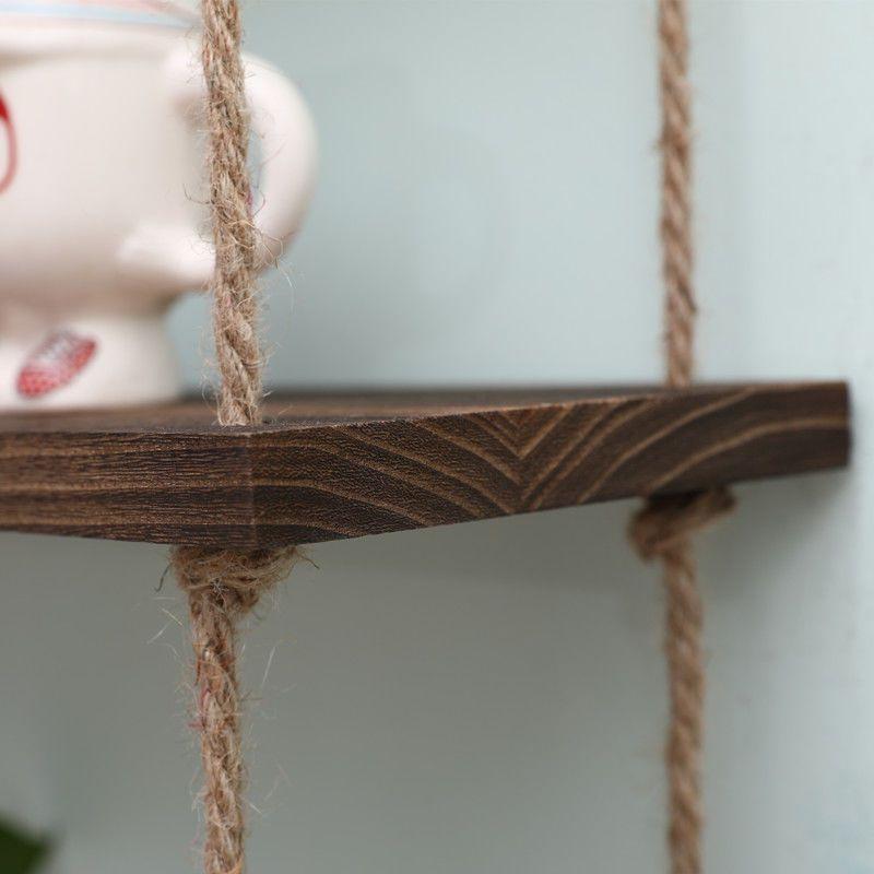 Notre étagère en corde est robuste et fonctionnelle. Les trois étagères sont maintenues par des petits noeuds pour ne pas qu’elles puissent glisser sur la corde. Nos étagères suspendues murales donnent une touche naturelle à votre pièce avec les matières de bois et de corde qui s’entremêlent. Vous allez l’adorer.